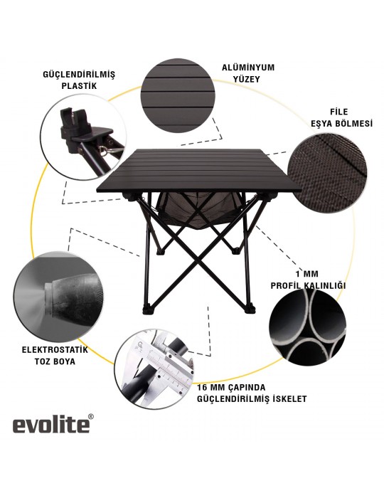 Evolite Nature Katlanabilir kamp masası, az yer kaplayan, ultra sağlam yapısı ve hafif özelliği ile tüm kamp süresinde size rahatlık sunması için tasarlandı.