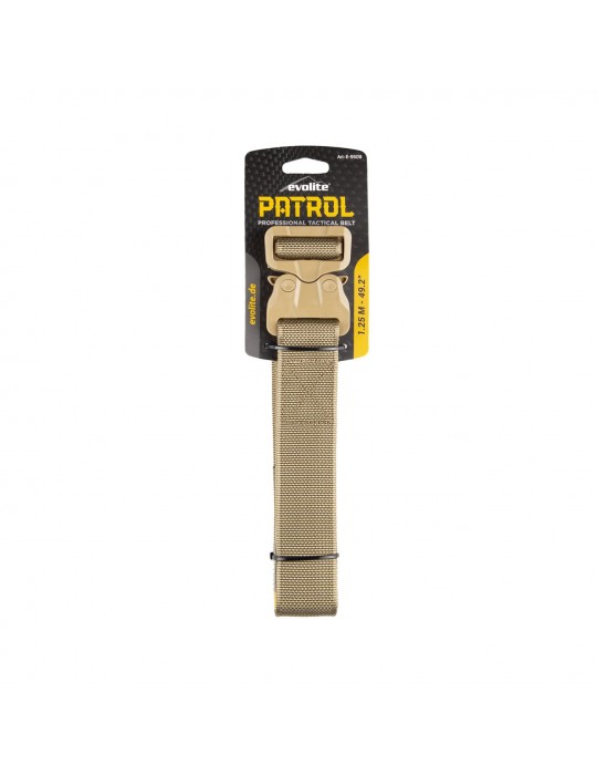 Piyasadaki diğer tüm ABS polimer donanım türlerinden daha sağlam olacak şekilde tasarlanan Evolite Patrol kemer, 220 kg. bir hedef çekme yüküne sahiptir. Evolite kemer tokası, hiçbir metal bileşen içermeyen %100 polimer bir sistemdir ve kemeri dayanıklılıktan ödün vermeden olabildiğince hafif ve rahat tutar.