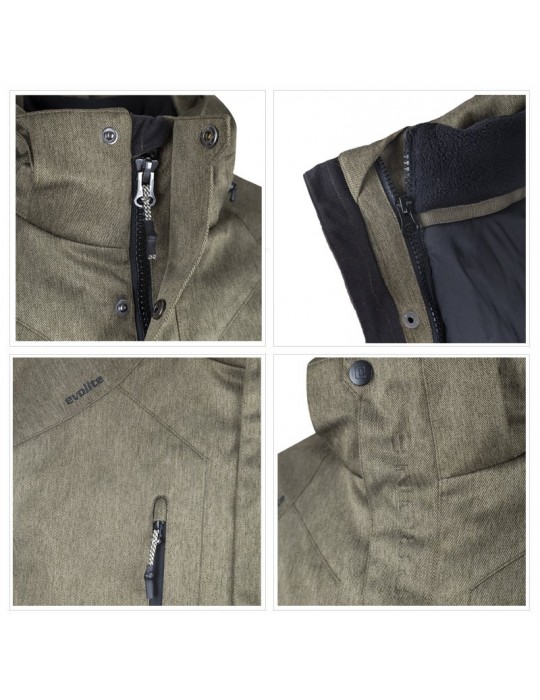- Dış ceket kumaşı nefes alabilir, su ve rüzgar geçirmez EVO-TEX kumaştan üretilmiştir.